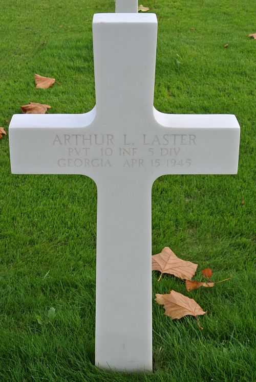 Pvt Arthur L. Laster enlisted at Fort McPherson Atlanta, Georgie on 27 May 1944.Source of information: Peter Schouteten, Terry Hirsch, WWII Draft Card, www.abmc.gov, www.wwiimemorial.com, www.archives.gov - WWII Enlistment Record, www.ancestry.com - Headstone and Interment Record, Alvie Laster, various family trees