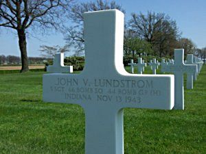 Source of information: Peter Schouteten, Raf Dyckmans, Cecelia Lundstrom (sister), www.abmc.gov, www.44thbombgroup.org, www.wwiimemorial.com, Footnote.com, www.ancestry.com - Headstone and Interment Record, Vigo County Public Library (scrapbook)