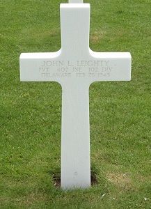 Pvt John L. Leighty graduated from Conrad High School and was a clerk at the Pennsylvania Railroad before he enlisted in Camden, New Jersey on 18 November 1943. He was sent overseas in November 1944.He was trained to serve in the railroad battalion but was transferred to the infantry soon after he arrived in Europe.