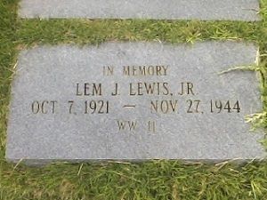 T/4 Lemuel J. Lewis is remembered at the Leaf River Baptist Church in Pineville, Smith County, Mississippi.His brother Sidney F. Lewis also died during WWII and is also buried at Margraten.