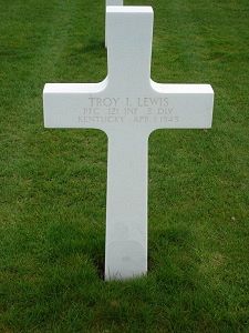 Pfc Troy I. Lewis enlisted in Evansville, Indiana on 22 September 1943.Source of information: Peter Schouteten, Astrid van Erp, www.abmc.gov, www.wwiimemorial.com, www.archives.gov - WWII Enlistment Record, www.ancestry.com - Kentucky Birth Index / Headstone and Interment Record
