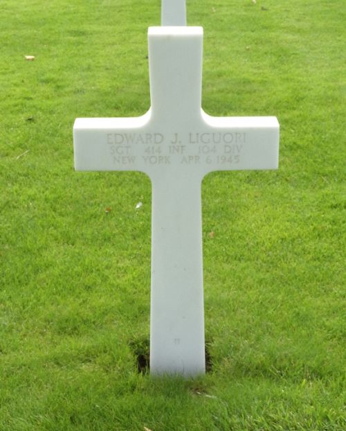 Sgt Edward J. Liguori attended Rye Neck High School and was employed as a butcher at Blue Bird Meat Markets and Maier's Food Market.He enlisted in Fort Jay, New York on 13 April 1942. He was with the Army Air Corps for two and a half years at Moore Field in Mission, Texas. He was transferred to the Infantry in October 1944 and received training at Camp Maxey, Texas. He was sent overseas in January 1945.