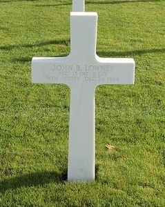 Pfc John B. Lowney attended St Mary's High School for two years and was a coffee clerk at the A. & P. market in his home town.He enlisted in Newark, New Jersey on 27 October 1942 and trained at Fort Wood, Missouri. He was went overseas on 10 November 1943.
