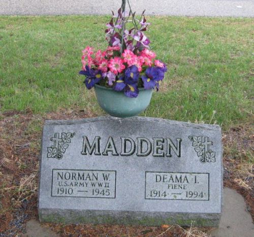 Norman Madden enlisted on 22 June 1944 and was sent overseas on 19 December 1944.Norman W. Madden is remembered at St. Patrick's Cemetery in Mauston, Juneau County, Wisconsin.
