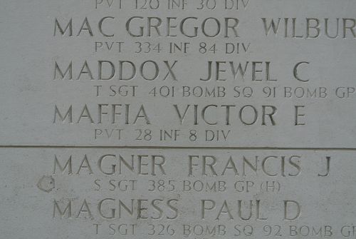Pvt Victor E. Maffia attended Mount Angel High School and was a truck driver for the Portland Auto Delivery before he enlisted in Fort Lewis, Washington on 6 June 1944. He was sent overseas in November 1944.Source of information: Peter Schouteten, Terry Hirsch, J. Dovermann-Leijendeckers, www.abmc.gov, www.wwiimemorial.com, www.archives.gov - WWII Enlistment Record, www.ancestry.com - 1940 Census, www.myheritage.nl - The Oregon Statesman, newspaper article, WWII Draft Card