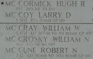 S/Sgt Mc Cray was officially declared dead one day and one year after he was reported missing in action.