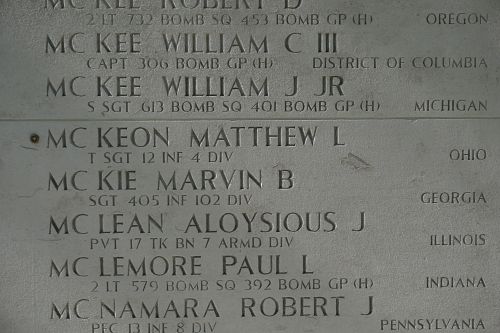 Mc Keon’s name is recorded on the Walls of the Missing at Margraten Cemetery. A rosette will be placed next to his name to indicate he has been accounted for.