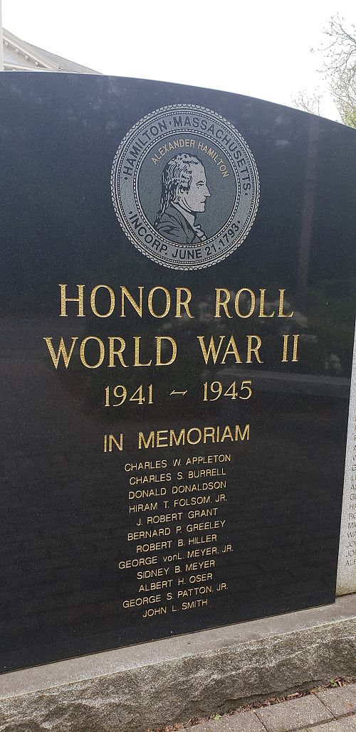 His name is mentioned on the monument outside of Hamilton Town Hall, Massachusetts.