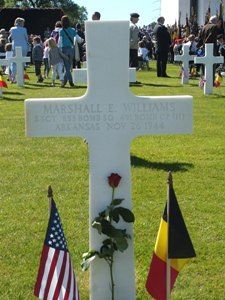 S/Sgt Marshall E. Williams was first buried at Temporary American Military Cemetery Ardennes, Belgium Block K, Row 12, Grave 286.