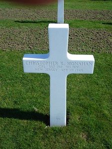 Cpl Christopher K. Monahan enlisted in New York City, New York on 23 February 1943.Source of information: Peter Schouteten, www.abmc.gov, www.wwiimemorial.com, www.archives.gov - WWII Enlistment Record, www.ancestry.com - Headstone and Interment Record