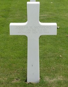 Pvt Joseph M. Monford moved from Canada to the USA. He arrived together with his mother and brother in Detroit, Michigan on 10 May 1940. His father died in 1910 in Ontario, Canada.He enlisted in november 1943 and was sent overseas in August 1944.