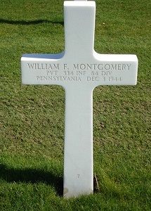 Pvt William F. Montgomery graduated from Hollidaysburg High School in 1943 and was engaged in the Future Farmer Work Program, in which he did outstanding work. For that reason he began farming himself. He specialized in the growing of potatoes and was given the achievement award from the federal government for his outstanding contribution in the field of agriculture.He enlisted in New Cumberland, Pennsylvania on 5 April 1944 and arrived in Europe on 15 September 1944.