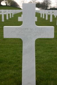 Cpl Robert H. Hill enlisted on 20 June 1942 at Fort Hayes, Ohio.On 7 January 1945, Robert Hill fired on the German machine gun positions with his BAR to cover the withdrawel of what was left of the squad. He was killed during that fight and later was recommended for the Silver Star Medal but General Ridgway interceded and personally signed the endorsement upgrading the award to a Distinguished Service Cross.