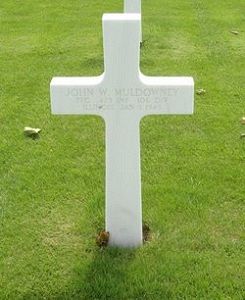 Pfc John Muldowney was taken prisoner in the vicinity of St. Vith, Belgium on 21 December 1944. He died in Stalag 6G.Source of information: Danny van der Groen, Peter Schouteten, www.abmc.gov, www.archives.gov – Prisoner of War Records, www.wwiimemorial.com – Jeremiah P. & Ann C. Ballauer (half brother), www.findagrave.com, www.ancestry.com – Headstone and Interment Record / My Pinkerton Family Tree