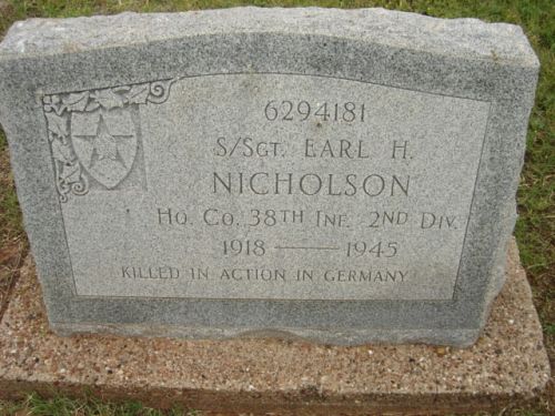 S/Sgt Earl H. Nicholson graduated from Wichita Falls High School in 1938.He joined the Regular Army at Pope Field, Fort Bragg, North Carolina on 3 November 1939. He was with the 38th infantry for three years.