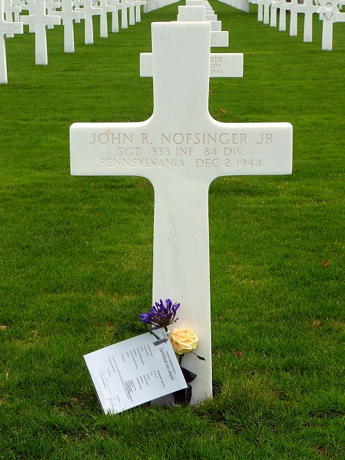 Sgt John R. Nofsinger Jr. enlisted in Greensburg, Pennsylvania on 5 December 1942.He was shot in the neck. He asked if someone would tell his wife Betty.