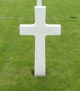 Pfc George W. O'Neal enlisted at Fort Bragg, North Carolina on 3 October 1942.He was reported severely wounded in action on 7 July and transferred to the 128th Evacuation Hospital, for which he was awarded the Purple Heart Medal a first time. After recovery he rejoined his unit.