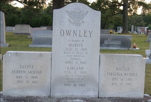 His brother T/4 Garland H. Onley, died as a POW in Camp O'Donnell in the Philippines. He is interred at the Manila American Cemetery and Memorial.