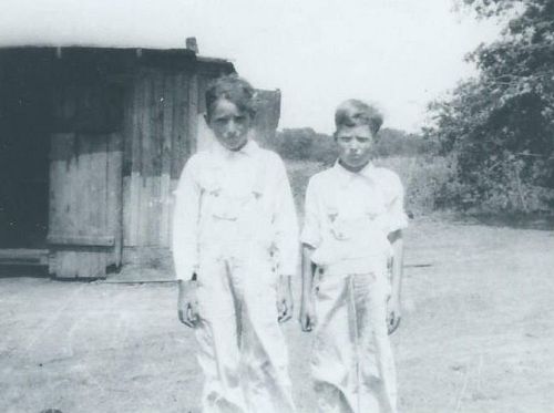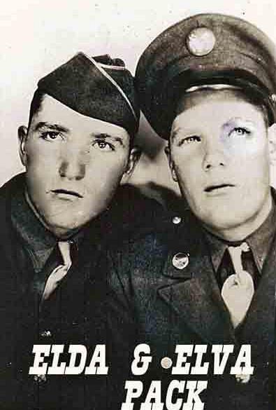 One photo shows Pfc Pack with his twin brother Elda. Elva was killed on the day his brother was wounded in battle. They enlisted together.