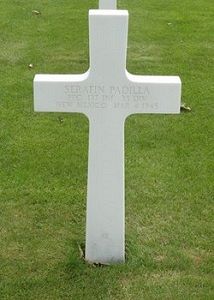 Pfc Serafin Padilla enlisted in Santa Fe, New Mexico on 23 November 1943.Before entering the service he was an employe of the Schwartzman Packing Co. He trained at Fort Bliss and Camp Finnin, Texas and served in France, Belgium and Germany. Pfc Padilla spent seven months overseas and was wounded twice.