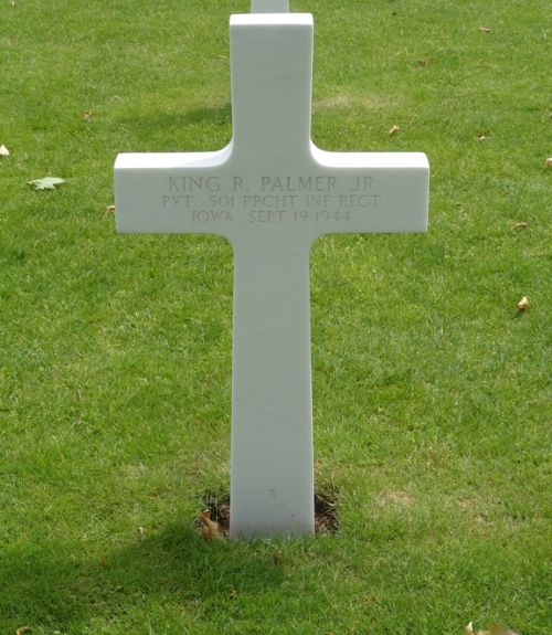 Pvt King R. Palmer Jr. joined the Regular Army Reserve in Boonville, Missouri on 5 December 1942. He attended college for 1 year.His section had entered the centre of the town when they got in a severe fight. Pvt Palmer got seperated and was killed.
