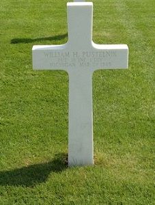 Pvt William H. Pustelnik graduated from Southwestern High School in 1940. He volunteered for the Army of the United States in Detroit, Michigan on 19 October 1942, originally in the Air Corps. He was employed as a machinist at Pfaff Sash & Door Company.His brother, Sgt George H. Pustelnik died on 13 June 13 1944 and is buried at the Normandy American Cemetery in Colleville-sur-Mere in France.