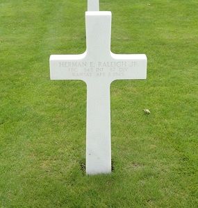 Pfc Herman E. Raleigh worked at Raleigh Dairy before he enlisted at Fort Leavenworth, Kansas on 28 April 1944. He was sent overseas 28 August 1944.
