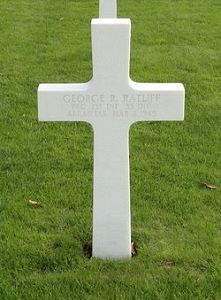 Pfc George R. Ratliff enlisted at Camp Joseph T. Robinson, Little Rock, Arkansas on 1 August 1944.He was awarded the Silver Star Medal posthumously. The citation stated: When his unit was pinned down and encountered heavy opposition from the enemy during an attack, Pvt Ratliff voluntarily covered the reorganization of his squad from an exposed position. His gallant performance in this action enabled the squad to resume its advance, but as he moved to rejoin it, he was killed by an enemy sniper. His intrepid, daring and self-sacrifice reflect high credit upon his character as a soldier.