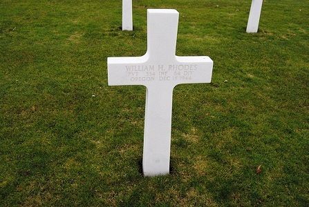 Pvt William H. Rhodes graduated from Pendleton High School and attended Oregon State College. He was employed at the Hotel Pendleton and later by the Union Pacific railroad before he enlisted in Portland, Oregon on 25 January 1944. He was sent overseas in August 1944.On 28 December 1944, relatives received a letter, dated 10 December, in which Pvt Rhodes said that he was in a hospital somewhere in the European theater, following a fracture of the left leg above the knee. He said he was receiving excellent care and was doing well.