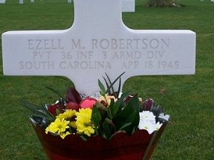 Pvt Ezell M. Robertson enlisted at Fort Jackson, Columbia, South Carolina.He attended high school for two years and was a weaver before he enlisted. He is remembered at the Unity Cementery in Fort Mill, York County, South Carolina.