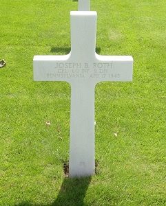 Cpl Joseph B. Roth was employed by the Wilbur-Suchard Chocolate Co. in his hometown.He enlisted in New Cumberland, Pennsylvania on 20 June 1941 and served three years as a military policeman at Camp Belvoir, Maryland. He was sent overseas in February 1945.