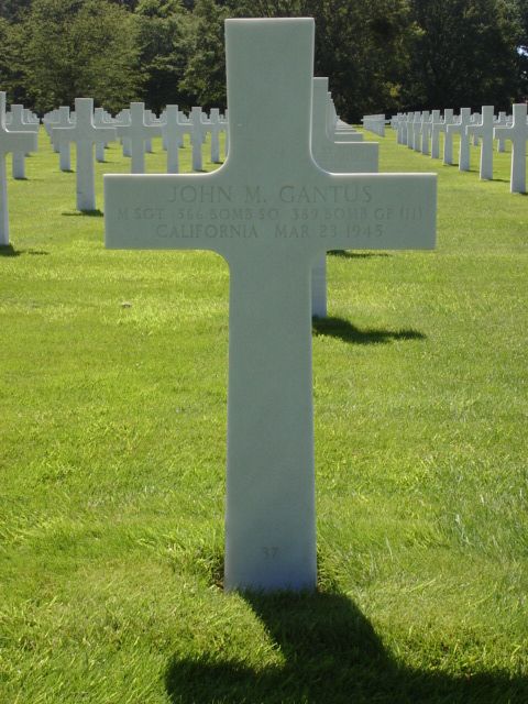 Master Sergeant Gantus had participated in the African campaign and seen other action. He had been in service for three and one-half years, two of which he spent overseas. He graduated from Alhambra High School and, before his enlistment, was employed by the Southern Pacific Railway Company.Just after leaving the target aircraft 42-95588 made a turn to the right as briefed. About one minute later, the only observation we had was the aft portion of the ship from front bomb bay back, burst into flames. The aircraft then pulled up slightly and dropped off on its left wing and went down. Gunners watched it as far as possible and saw only three parachutes come out, and as they stated the entire ship was consumed in flames.