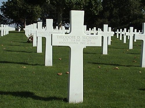 Pvt Theodore D. Sechrist enlisted in New Cumberland, Pennsylvania on 19 April 1944.Source of information: André Koch, Terry Hirsch, www.abmc.gov, www.wwiimemorial.com, www.archives.gov - WWII Enlistment Record, www.ancestry.com - 1920/1940 Census / Hearing-Rogers Family Tree / U.S., Headstone and Interment Records for U.S. Military Cemeteries on Foreign Soil / Veteran Compensation Application File