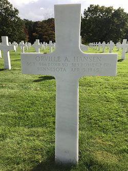 Sgt Orville A. Hansen attended Denfield High School.At around 0830 the pilot radioed he was losing fuel and had to make a crash landing but he didn't mention the location. Shortly afterwards it was reported from Haamstede that an American plane had been shot down between Brouwershaven and Zonnemaire. Because of this location, it is believed that the fuel spill may have led to an explosion or that the B-24 was shot down by Flak near the coast, but a failed emergency landing is also possible.