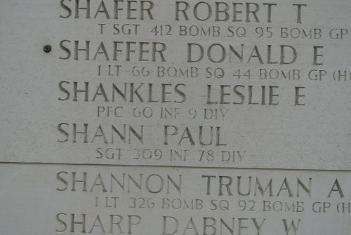 Sgt Paul Shann enlisted in Fort Oglethorpe, Georgia on 26 August 1942.He was reported Missing in Action while escorting prisoners of war to the rear lines.