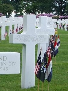Pvt Clarence L. Shrout enlisted in San Francisco, California on 2 October 1943.He was already a veteran of the D-Day landings in Normandy.