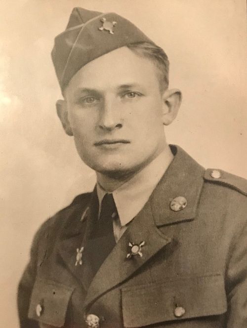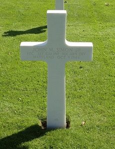 Pfc John M. Simon Jr. was a flower grower when he joined the National Guard in Baltimore, Maryland on 3 February 1941.He travelled extensively with the Army Show and was assigned as an instructor before joining a glider unit. He was sent overseas in September 1943 and was reported wounded in action in June 1944 but returned to his unit. For this wound he was awarded the Purple Heart Medal for the first time.