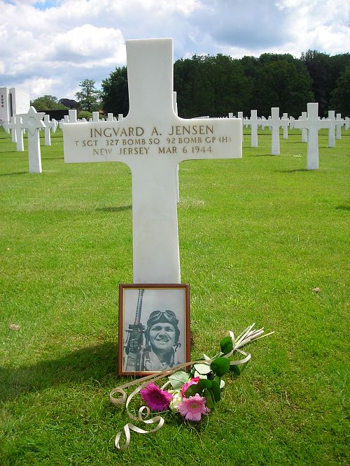 Ingvard A. Jensen was a graduate of Bound Brook High School. He was a former employee of R. Hoe & Company plant in Dunellen.He attended radio school at the Sioux Falls Air Base in South Dakota, and received his wings as an aerial gunner at Harlingen, Texas. He also was stationed at Blythe in California and Rapid City in South Dakota. T/Sgt Jensen was the oldest of four sons, all of whom were in the Army.