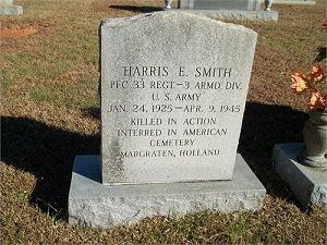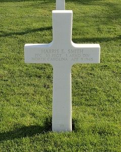Pfc Harris E. Smith attended high school for four years and worked on a farm.He enlisted at Fort Bragg, North Carolina on 19 May 1944 and was sent overseas in December 1944.