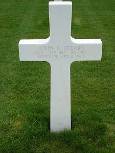 Sgt John K. Stears graduated from Crisman High School in 1941 where he played football and was in the Glee Club. He was employed by the Brunson Instrument Co.On his Draft Cards he lists a scar and a 'crossed right eye' as a physical characteristic.