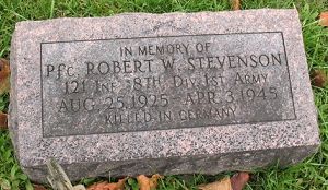 Pfc Robert W. Stevenson attended Mitchellville High School until his senior year and graduated from High School Bonita, California in 1943.Source of information: Peter Schouteten, www.abmc.gov, www.wwiimemorial.com, The Des Moines Register Des Moines, Iowa - April 1945, http://www.vigo.lib.in.us