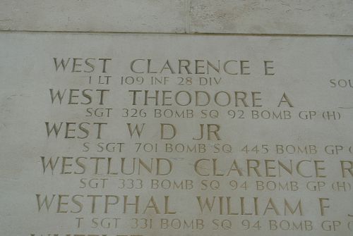 S/Sgt William D. West Jr. joined the U.S. Army Reserve in Lafayette, Louisiana, on 1 February 1943.The aircraft received a direct hit by flak while on its bomb run. The right wing came off, and a large hole was observed in the left wing. The ship then blew up as it crashed into the water.