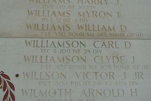 T/5 Carl D. Williamson graduated from Howard College (now Samford University) in 1942. He majored in history and played on the football team all four years where he was considered one of the best runners, blocker and tackler of the team. He enlisted at Fort McClellan, Alabama on 28 December 1942.