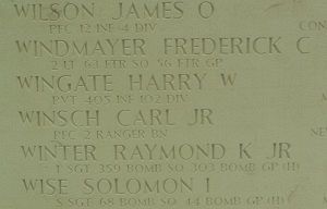 Pvt Harry W. Wingate went missing when his platoon crossed the river by boats.Source of information: André Koch, Terry Hirsch, www.abmc.gov, www.wwiimemorial.com, www.ancestry.com - http://carol_fus.tripod.com/army_hero_ggreenburg.html, Indiana, Marriages, 1810-2001 / 1920/ 1930US Federal Census