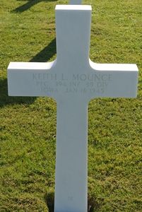 Pfc Keith L. Mounce graduated from Jefferson High School in 1941. He attended the University of California for one year.He enlisted at Camp Dodge, Iowa on 19 July 1943. He was sent overseas in September 1944.