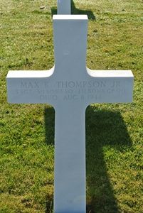 Max K. Thompson Jr. graduated from North Side High School in 1936 and Evansville College in 1941. He was employed at Feigel Construction Corporation.He joined the Air Corps of the U.S. Army reserve in Cincinnati, Ohio on 21 July 1942.