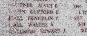 S/Sgt Hall’s name is recorded on the Tablets of the Missing at Ardennes American Cemetery. A rosette will be placed next to his name to indicate he has been accounted for.