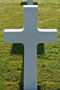 Pvt Carl Gheant worked as a loom fixer in the Lancaster plant of the Springs Cotton mills.He enlisted at Fort Jackson, Columbia, South Carolina on 23 November 1943. He was sent overseas in August 1944.