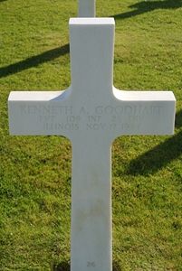 Pvt Kenneth A. Goodhart attended York Community High School.The remains of Pvt Kenneth Goodhart were found in Germeter and initially registered as Unknown X-6557. He was evacuated to Ardennes Cemetery and was identified at the identification center.