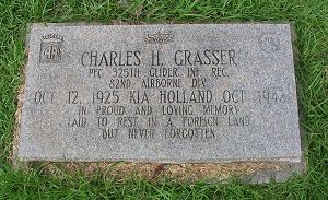 Pfc Charles H. Grasser enlisted at Fort Oglethorpe, Georgia on 6 June 1943.Source of information: Peter Schouteten, www.abmc.gov, www.wwiimemorial.com - John Grasser, www.archives.gov - WWII Enlistment Record, http://www.ww2-airborne.us/units/325/325_honor_eg.html, www.findagrave.com - rdsxfan, www.ancestry.com - U.S., Headstone and Interment Records for U.S. Military Cemeteries on Foreign Soil